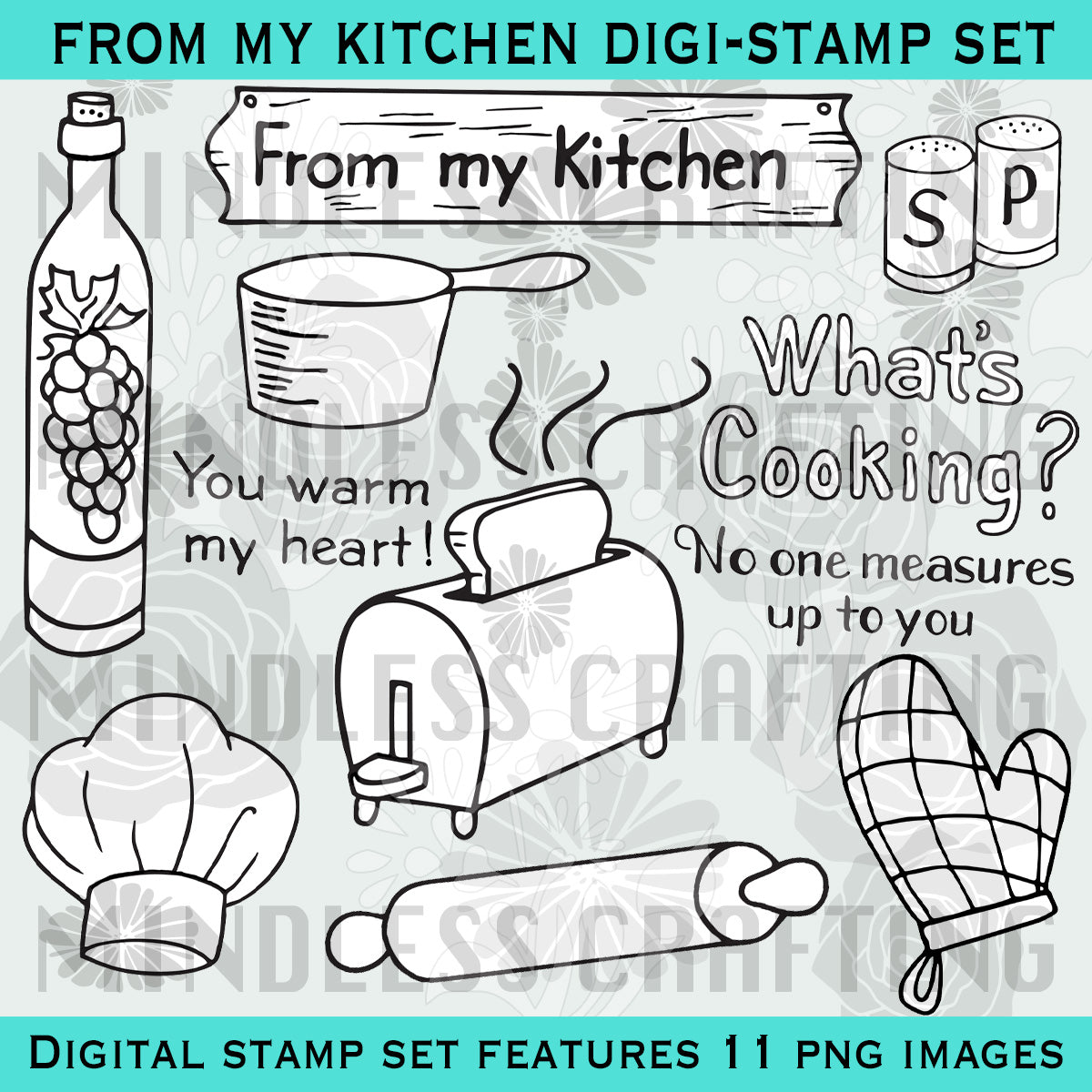 The Mindless Crafting From My Kitchen Digi Stamp Set includes: