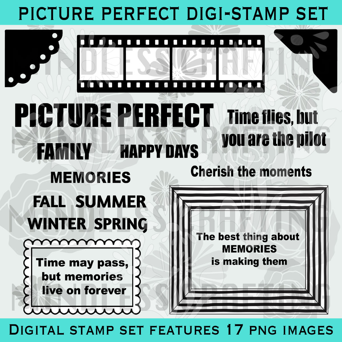 The Mindless Crafting Picture Perfect Digi Stamp Set includes: